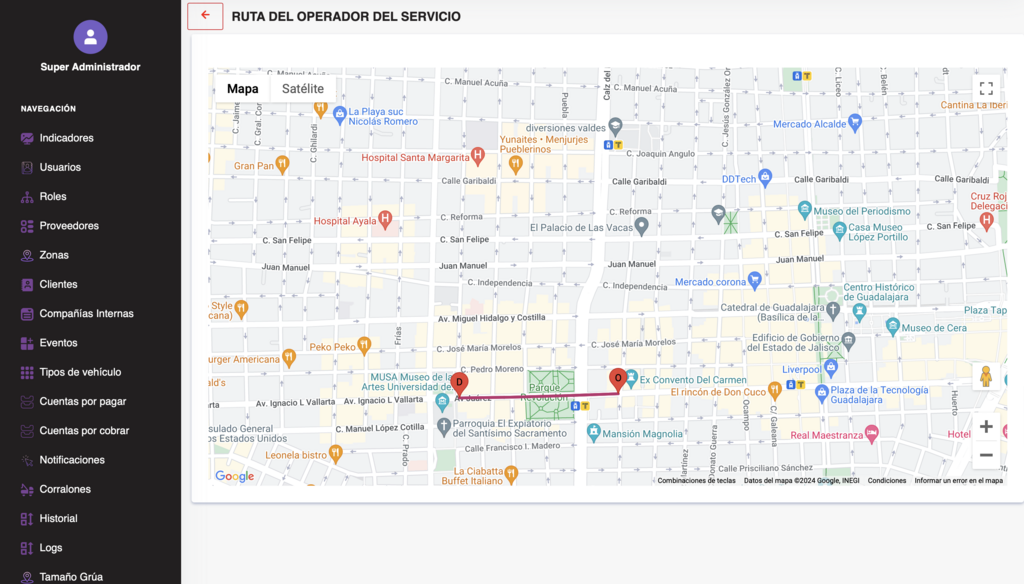 Obtenga total trazabilidad de sus eventos y siniestros desde el sistema web y sus aplicaciones móviles, desde la asignación de una grúa, el arribo al punto de maniobras, la creación de las papeletas digitales de servicio y el control de tarifas por distancias y por tipo de grúas.